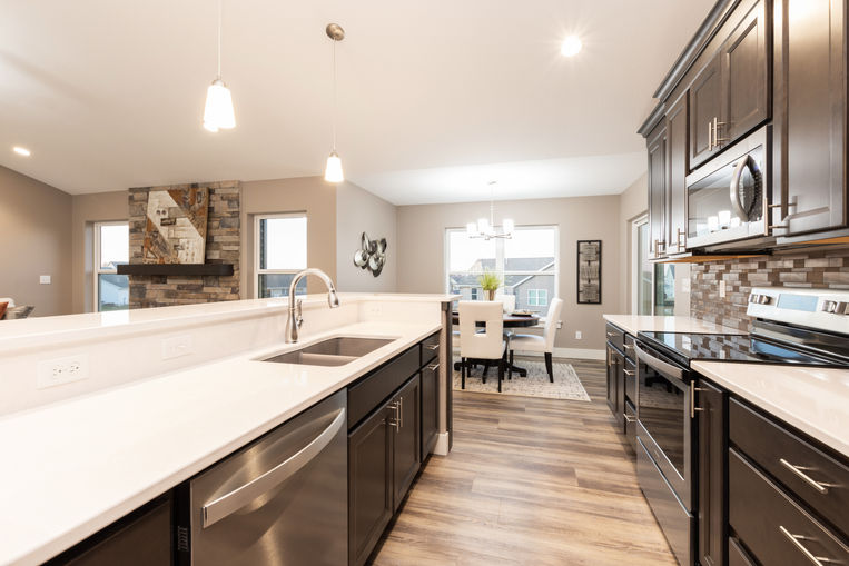 The Driftwood floor plan with 1, 505 square feet of living space offers a three-bedroom floor plan with the master suite separated from the other bedrooms. The kitchen features a large island with plenty of space for entertaining. Main floor laundry and a large walk-in closet in the master suite make this the perfect plan for anyone.